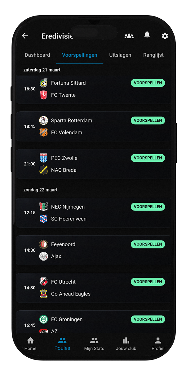 - Geeft extra dynamiek naast de normale ranglijst.